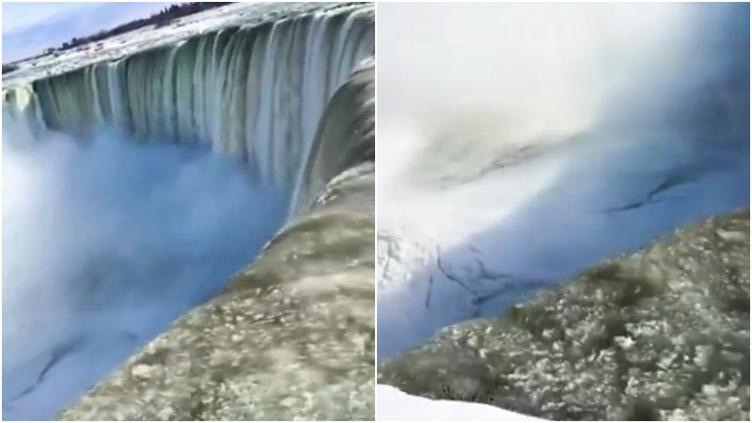En los videos, se puede ver el Río Niágara cubierto totalmente por nieve, con sólo una sección descongelada que se ve como “venas”, la cual es el lugar en donde está cayendo el agua de las cataratas.